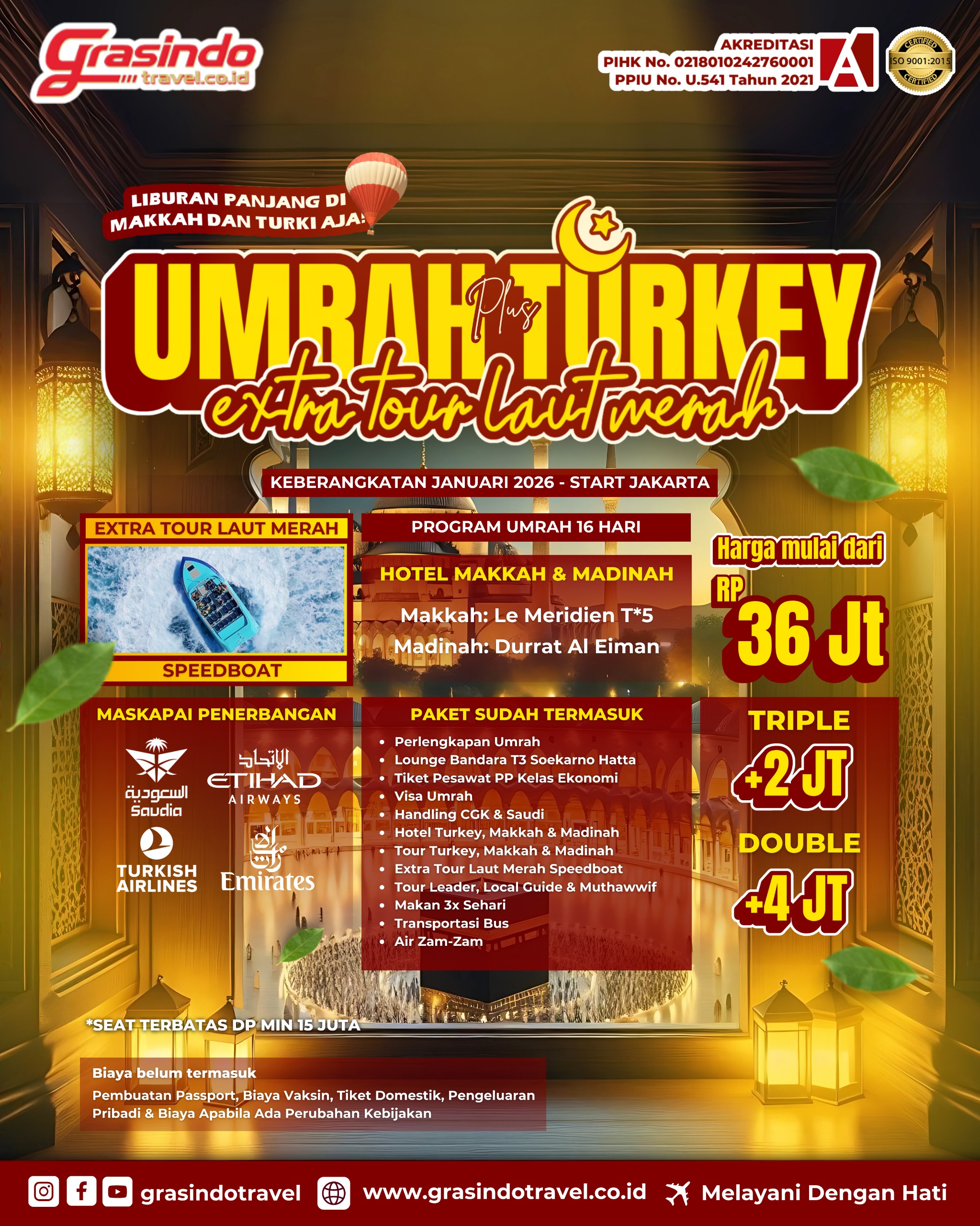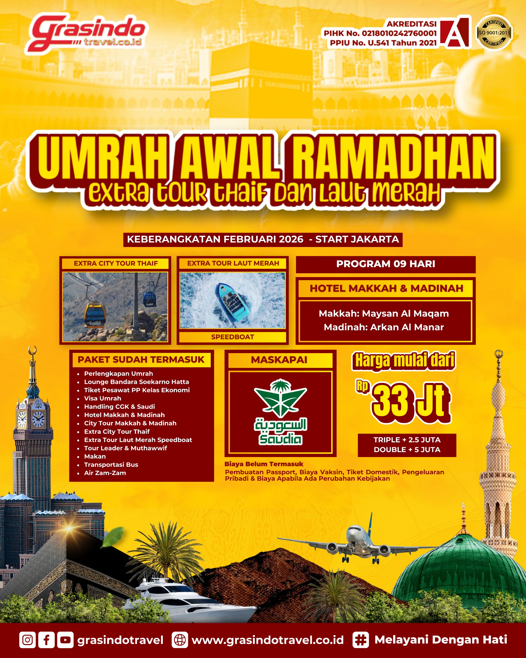 Memiliki izin resmi PPIU No. U.541, Izin PIHK No. 02180102427260001, Akreditasi A Kemenag RI dan tersertifikasi ISO 9001:2015